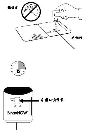 1. 无效结果,无对照线出现,A液加量不足时会出现。一定要加入足够量液体,将小瓶垂直持于拭子孔上方1/2-1英寸处,慢慢滴加,使液体自由落下。