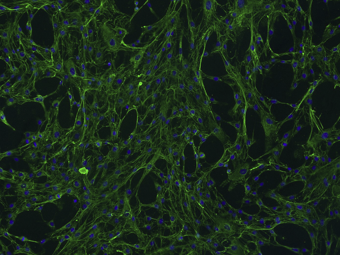 成纤维细胞是源自胚胎中胚层的间充质细胞。乳腺成纤维细胞(MF)合成乳腺基质细胞外基质的组分。更重要的是,这种基质细胞外基质通过影响它们的基因表达来调节乳腺上皮细胞的增殖和分化[1]。此外,先前的研究表明,乳腺成纤维细胞在招募巨噬细胞进行免疫监视中发挥作用,与细胞外基质周转和血管生成*,与肿瘤细胞进展的支持性乳腺微环境相关[2,3]。这些结果表明MF在乳腺癌的发展和侵袭中起着刺激性的功能作用。